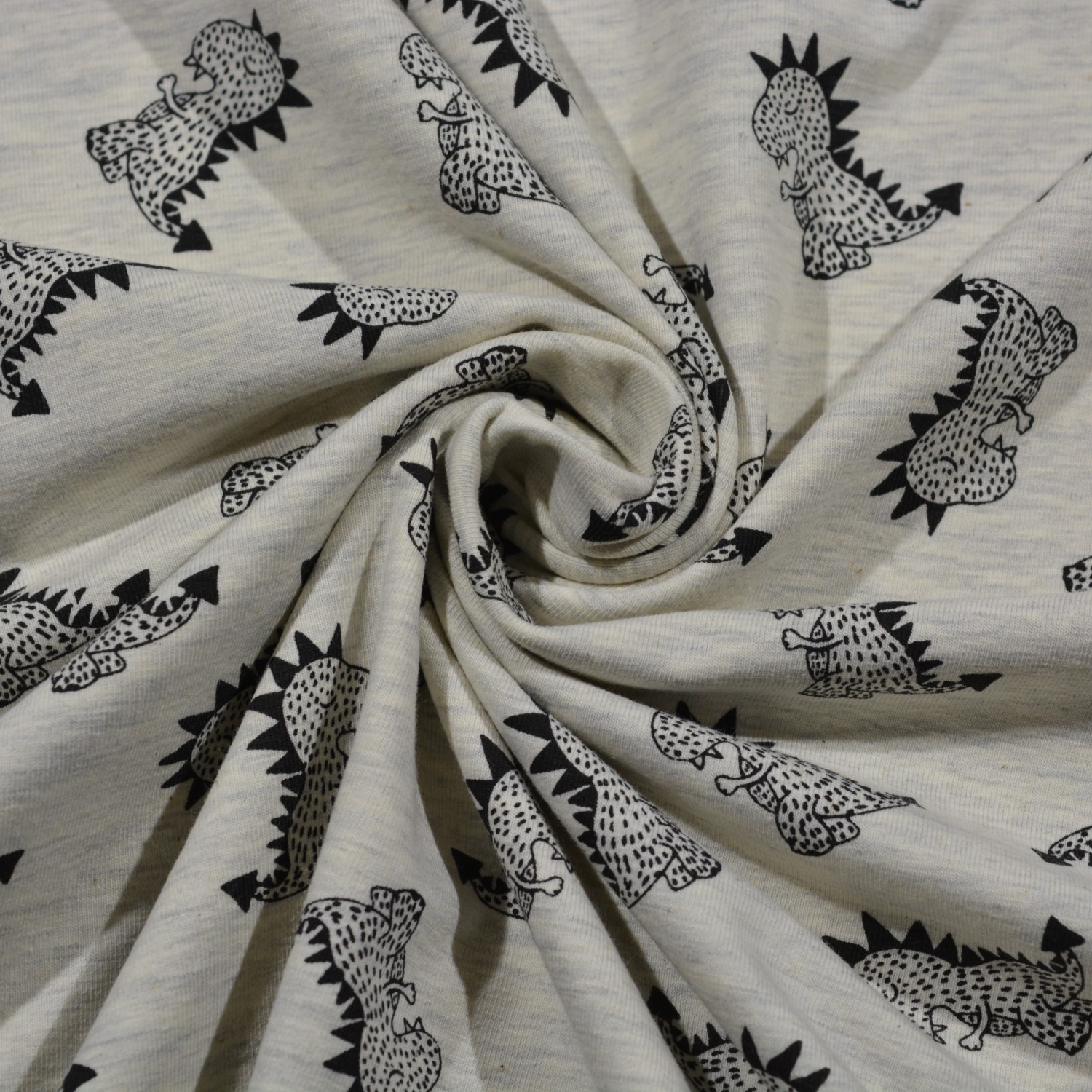 Baumwoll-Jersey – Dinosaurier-Muster in Schwarz auf Graumelange