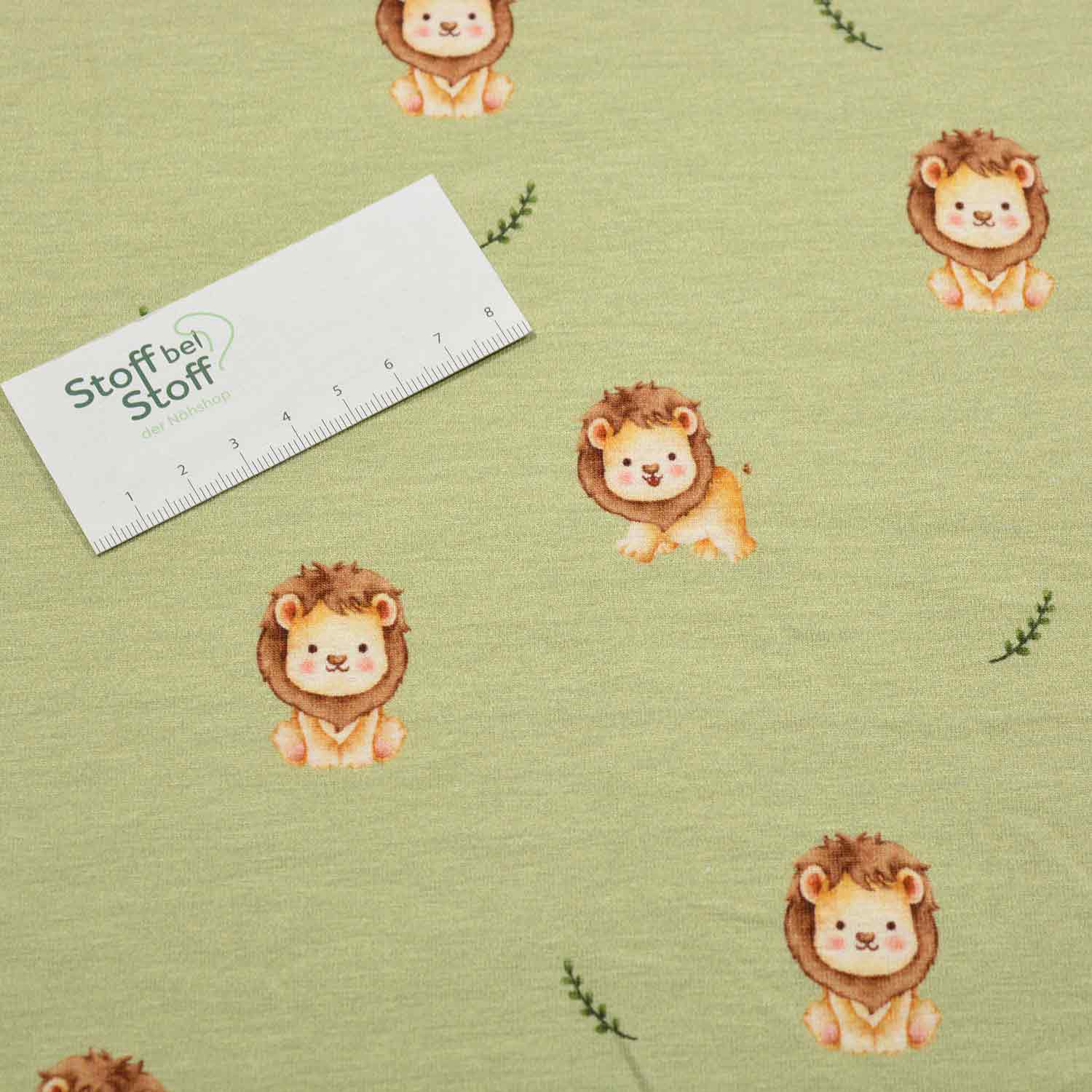 Entzückende Baumwoll-Jersey-Serie Dina aus dem Hause Glünz. Dieses kuschelige Jersey-Panel hat einen khakigrünem Untergrund und zeigt einen coolen Löwen mit Sonnenbrille, Hawaii-Hemd und Ananas-Drink. Darüber und drumherum stehen die Schriftzüge "What would you take to a Desert Island?" und "Make your own Adventure".Das Motiv hat einen Höhe von 22cm und eine Breite von 15cm.Die zweite Hälfte des Panels hat einen helleren Oliv-Ton als Untergrund und ist mit wunderschönen Zeichnungen von Zweigen, Blüten und Blättern bedruckt und mit Vögeln, die dazwischen herum schwirren.An der unteren Kante des Panels ist der Kopf des Löwen mit der Sonnenbrille quasi als Bordüre aufgedruckt.Ein traumhaftes Dessin mit exotischem Flair. Als Panel wird dieser Artikel nicht als Meterware, sondern Stückweise verkauft. Ein Panel hat die Gesamtabmessung von 110cm x 150cm.