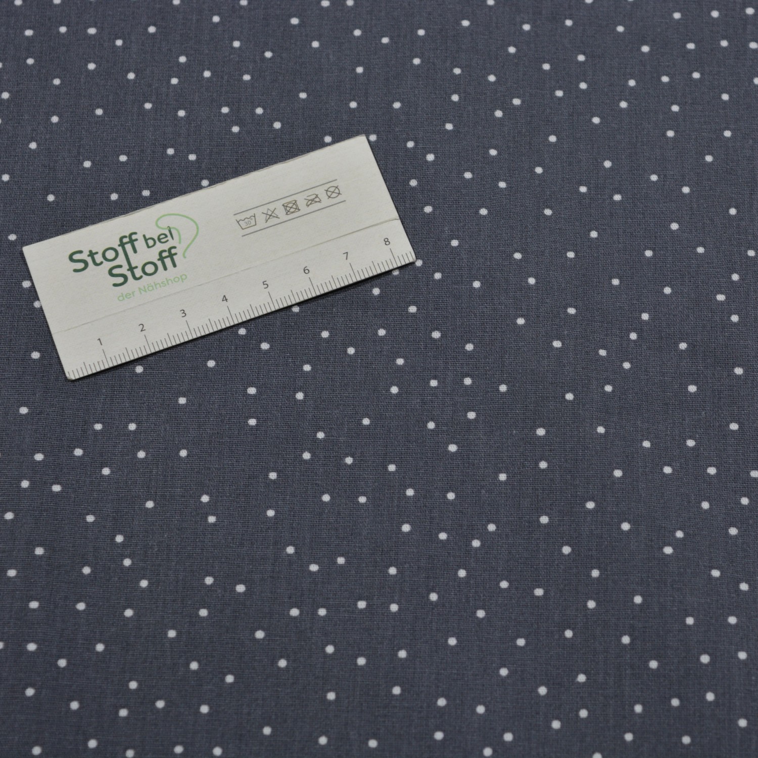 Dunkelgrauer Baumwollstoff mit weißen PunktenDieser wunderschöne Baumwollstoff in edlem Dunkelgrau ist mit dezenten weißen Punkten verziert. Das klassische Punktemuster verleiht dem Stoff eine zeitlose Eleganz und macht ihn vielseitig einsetzbar für verschiedenste Nähprojekte, sei es Kleidung, Dekoration oder Accessoires. Der Stoff ist besonders geeignet für Blusen, Hemden, Kissenbezüge oder auch kreative DIY-Projekte.Dank der hochwertigen Baumwollqualität ist der Stoff angenehm weich, atmungsaktiv und langlebig. Er lässt sich leicht verarbeiten und ist pflegeleicht, was ihn zu einem perfekten Begleiter für den Alltag und kreative Nähprojekte macht.