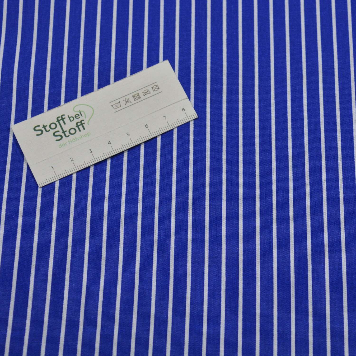Blauer Baumwollstoff mit weißen StreifenDieser blaue Baumwollstoff mit schmalen weißen Streifen besticht durch sein klassisches und elegantes Design. Ideal für Hemden, Blusen, Kleider und modische Accessoires verleiht dieser Stoff jedem Nähprojekt einen frischen und maritimen Look. Die hohe Qualität der Baumwolle sorgt für Komfort, Langlebigkeit und ist dabei leicht zu verarbeiten.Dank des klassischen Streifenmusters eignet sich dieser Stoff perfekt für sommerliche Outfits sowie Heimtextilien wie Kissen oder Vorhänge.