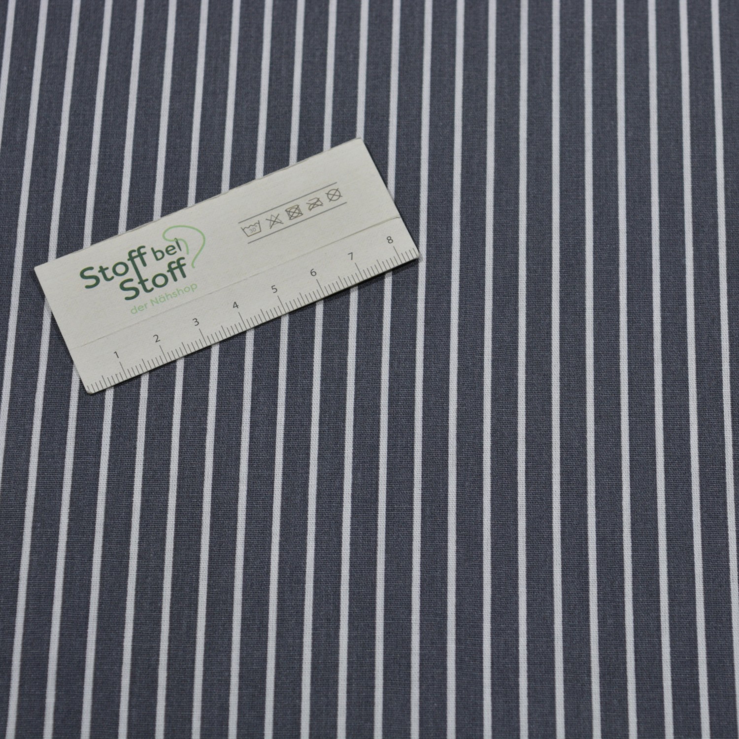 Dunkelgrauer Baumwollstoff mit feinen weißen StreifenDieser hochwertige Baumwollstoff in Dunkelgrau ist mit feinen weißen Streifen versehen und verleiht jedem Nähprojekt eine klassische Eleganz. Der Stoff eignet sich ideal für schicke Hemden, Blusen oder auch dekorative Heimtextilien wie Kissenbezüge und Tischläufer. Die schmalen Streifen verleihen dem Stoff eine dezente, aber dennoch moderne Optik.Die weiche Baumwollqualität sorgt für ein angenehmes Tragegefühl und lässt sich leicht verarbeiten. Dieser Stoff ist sowohl langlebig als auch pflegeleicht, was ihn perfekt für den täglichen Gebrauch macht.