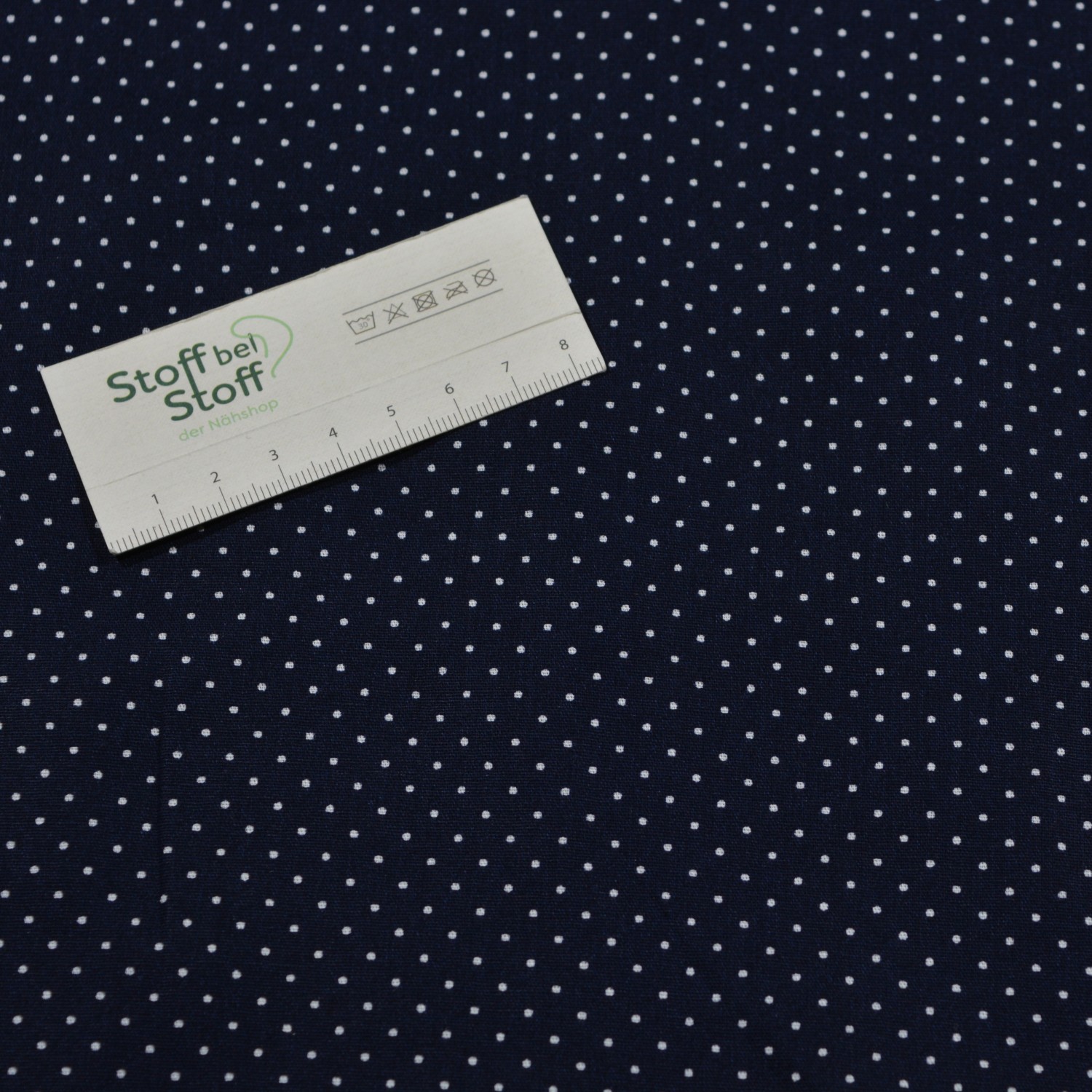 Dunkelblauer Baumwollstoff mit weißen Mini-PunktenDieser elegante dunkelblaue Baumwollstoff ist mit feinen weißen Mini-Punkten versehen und eignet sich hervorragend für eine Vielzahl von Nähprojekten. Ob für stilvolle Blusen, Sommerkleider oder kreative Heimtextilien, dieser Stoff bietet eine klassische Optik mit einem modernen Touch. Die hochwertige Baumwollqualität sorgt für einen angenehmen Tragekomfort und ist besonders pflegeleicht.Mit seinem dezenten Muster ist dieser Stoff ideal, um jedem Projekt eine besondere Note zu verleihen, ohne dabei zu auffällig zu wirken. Perfekt geeignet für Accessoires, Dekorationen oder schlichte, aber elegante Kleidungsstücke.