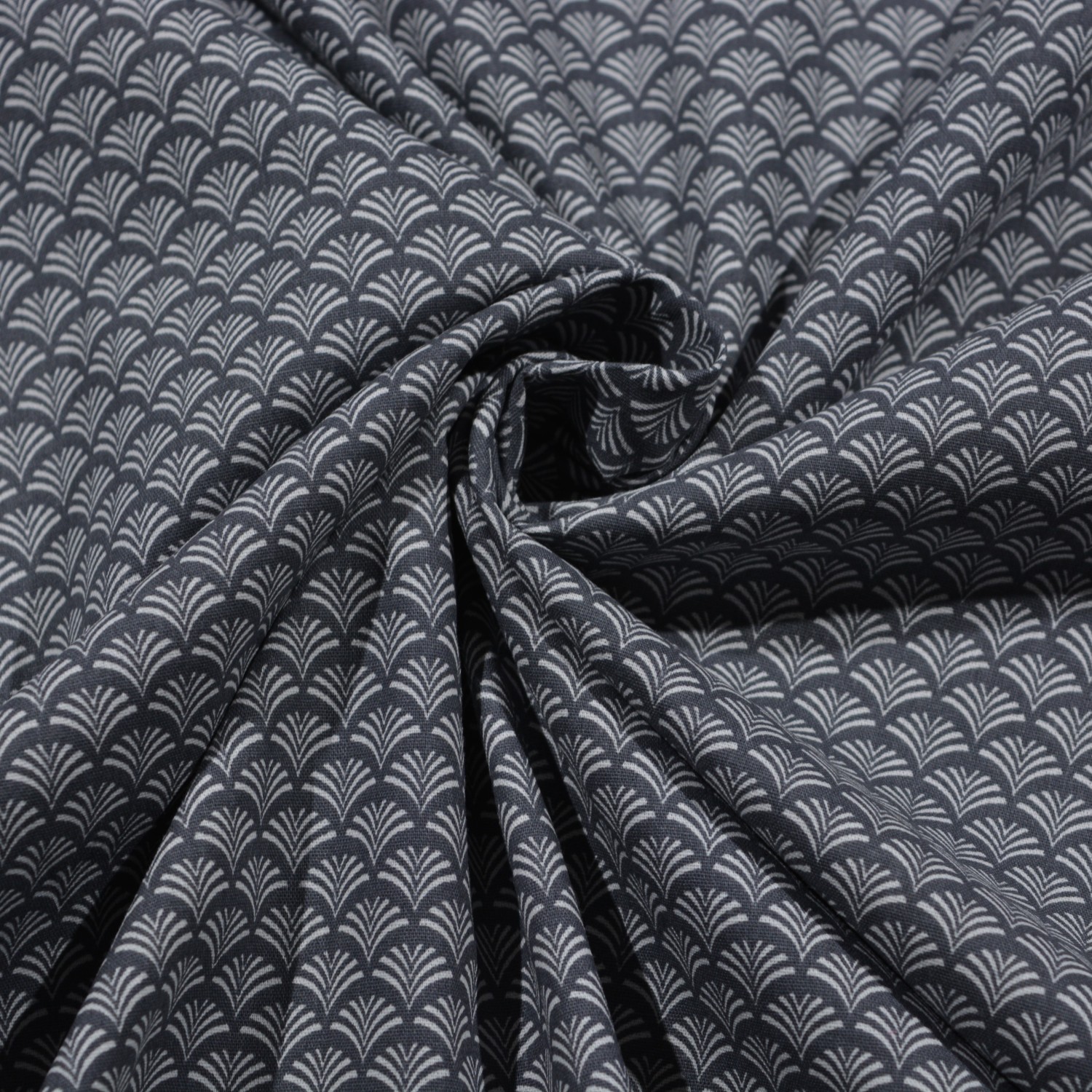 Dunkelgrauer Baumwollstoff mit weißem Art-Deco-Muster