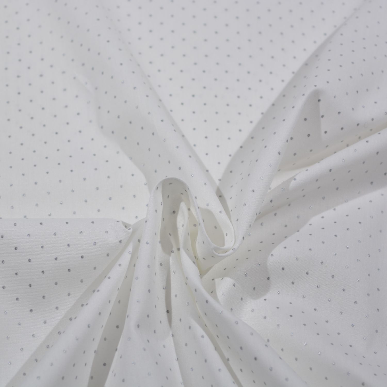 Die Pünktchen haben einen Durchmesser von etwa 1,5mm und sind in versetzten Reihen angeordnet ordentlich über den Stoff verteilt. Der silbrige Schimmer ist wunderschön.