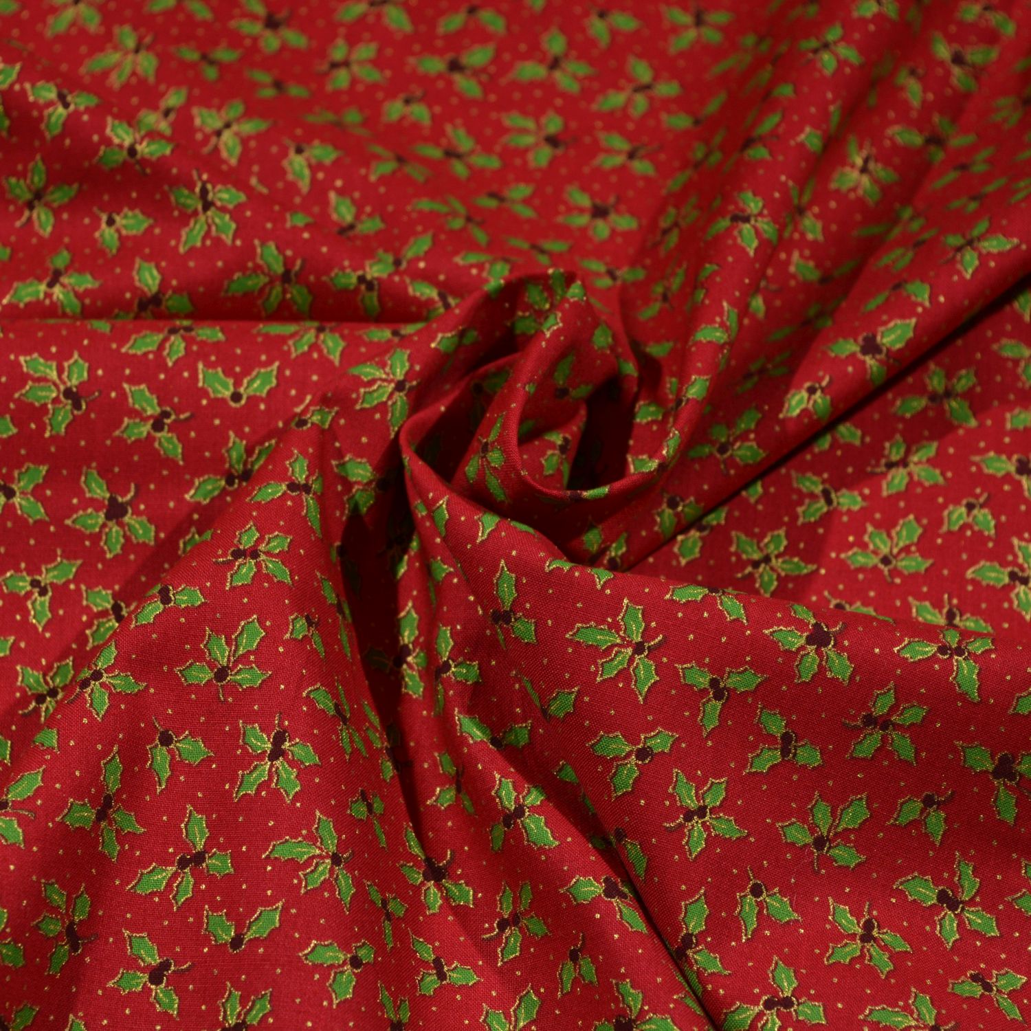 Das wunderschöne Dessin ist mit kleinen Ilex-Zweigen mit dunkelroten Beeren gestaltet, die golden konturiert sind. Dazwischen sind hauchfeine goldenen Pünktchen verteilt.