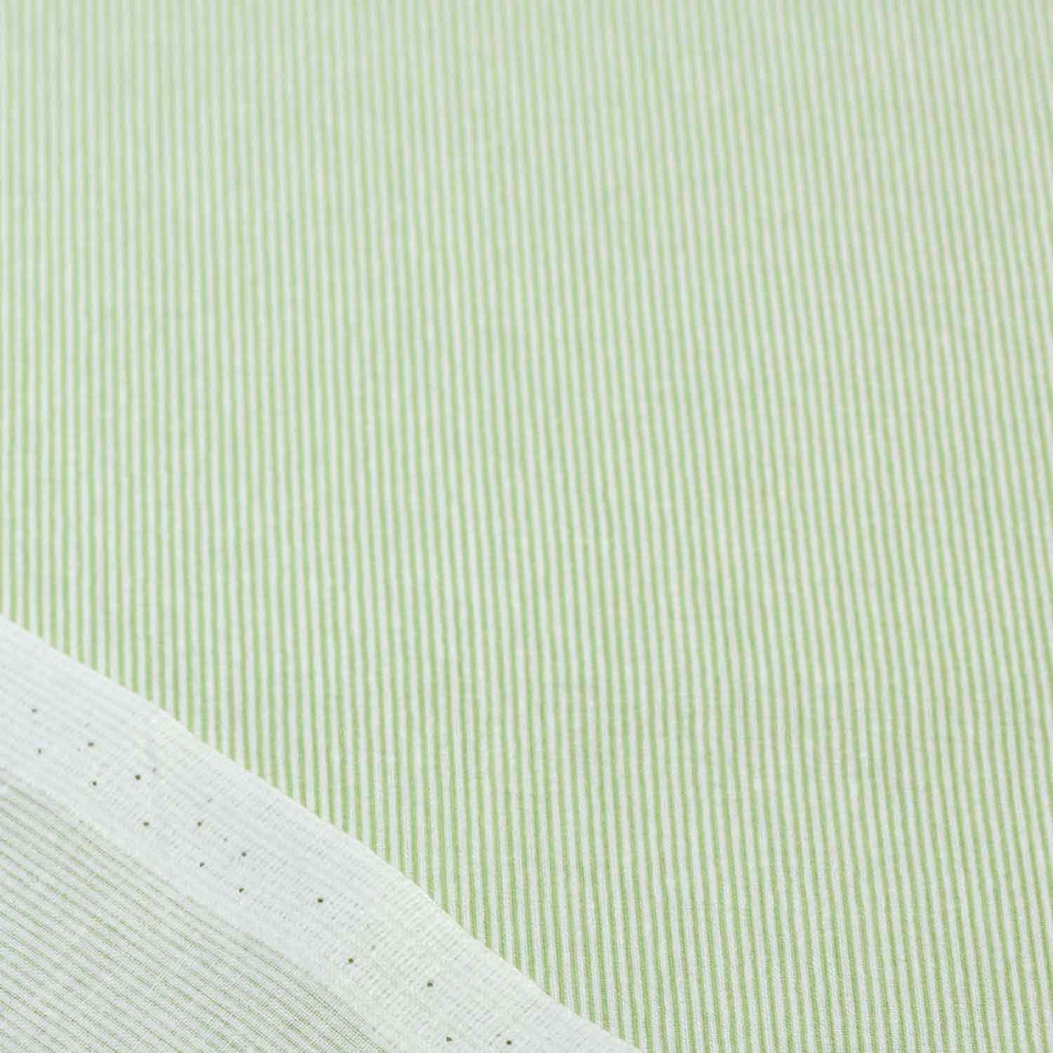 Baumwollwebware in zarten Farben mit einem dezenten, feinen Streifen von etwa 1mm Breite bedruckt. Farblich passend gibt es einen Kombi-Stoff mit einem zarten Streublümchenmuster.