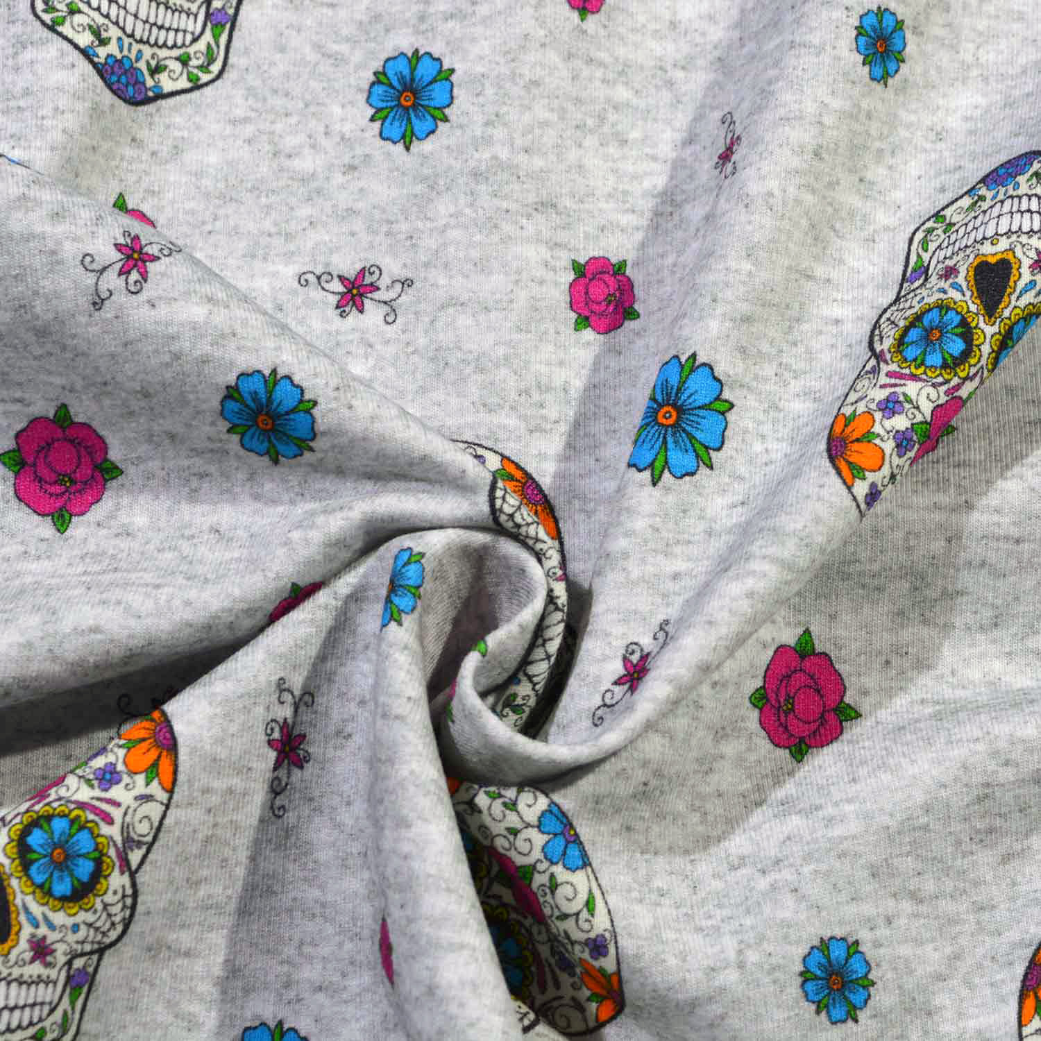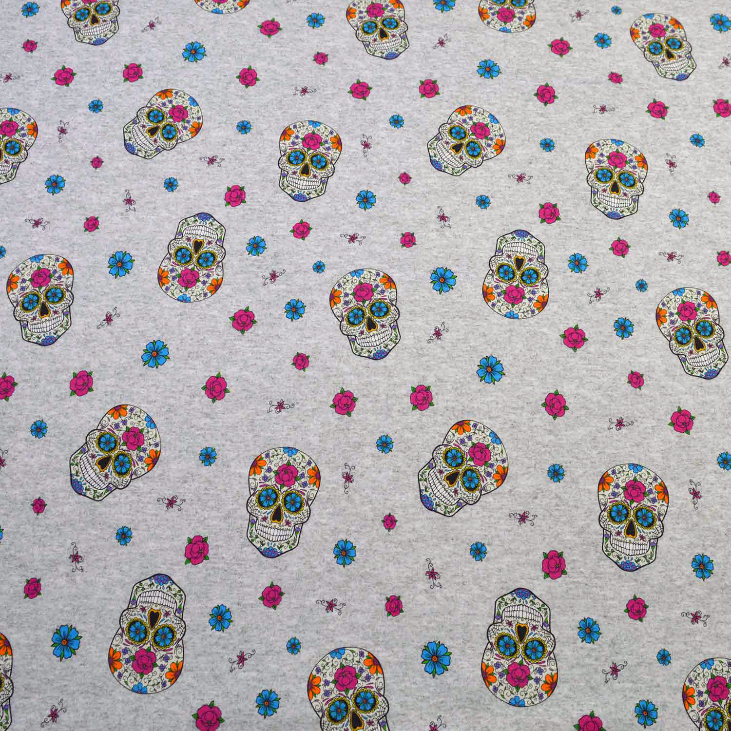 French Terry angeraut "Totenkopf mit Blumen" SBS10076