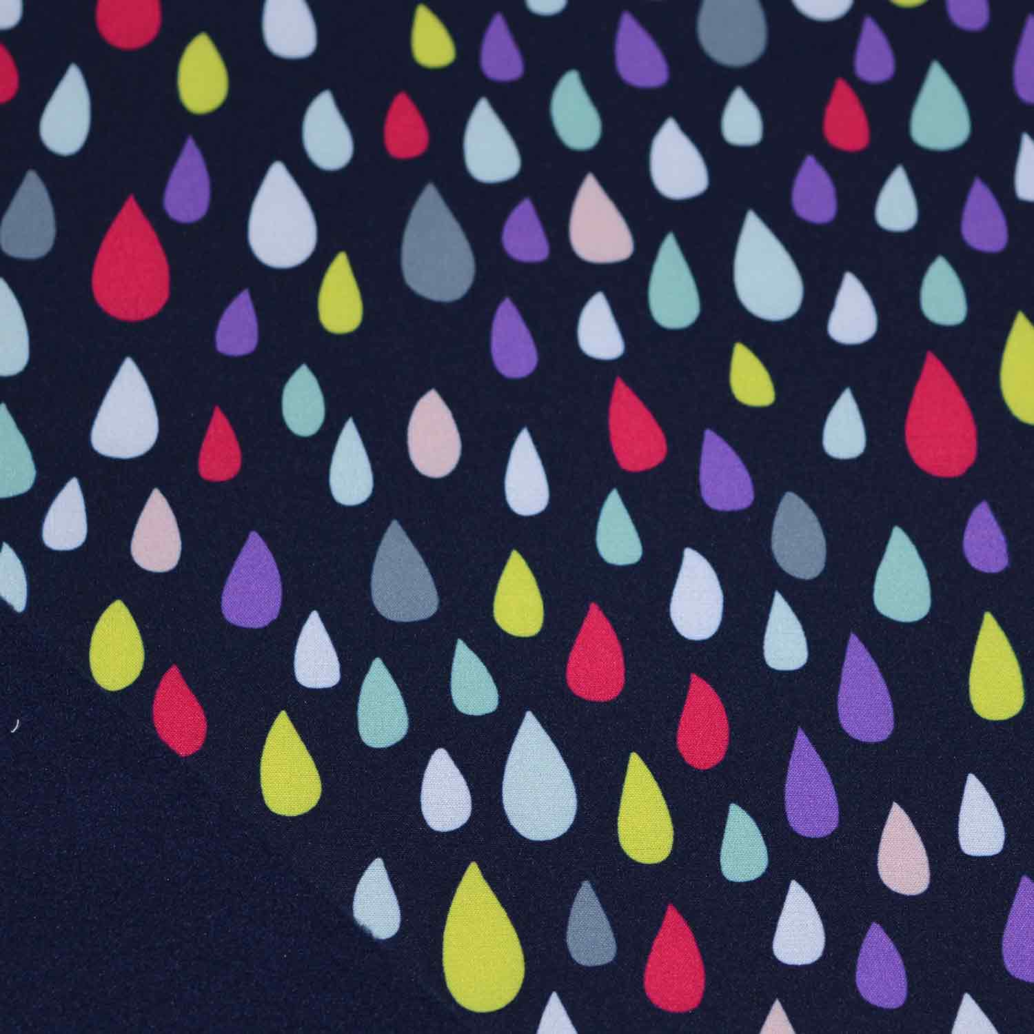 Schwarzer Softshell mit einem Aufdruck von glänzenden Wassertropfen in verschiedenen Größen, die mit einem tollen 3D-Effekt versehen sind und daher recht realistisch aussehen.Die flauschige Abseite des Stoffs ist ebenfalls schwarz getönt.Dieses Dessin gibt es noch in mehreren weiteren Farben!