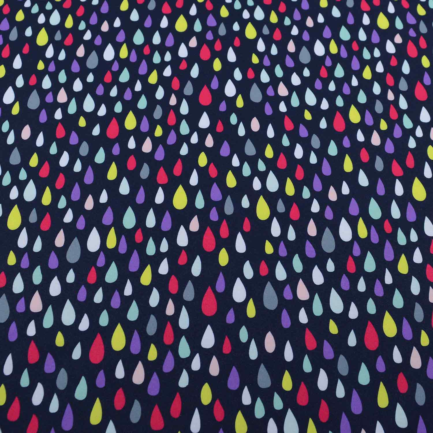 Dieser Softshell ist marineblau und mit schön aquarellierten Regentropfen bedruckt. Dies ist der Kombi-Stoff zu "Herr Krokodil im Regen", ohne das Krokodil mit dem Regenschirm...Die flauschige Abseite ist ebenfalls marineblau.