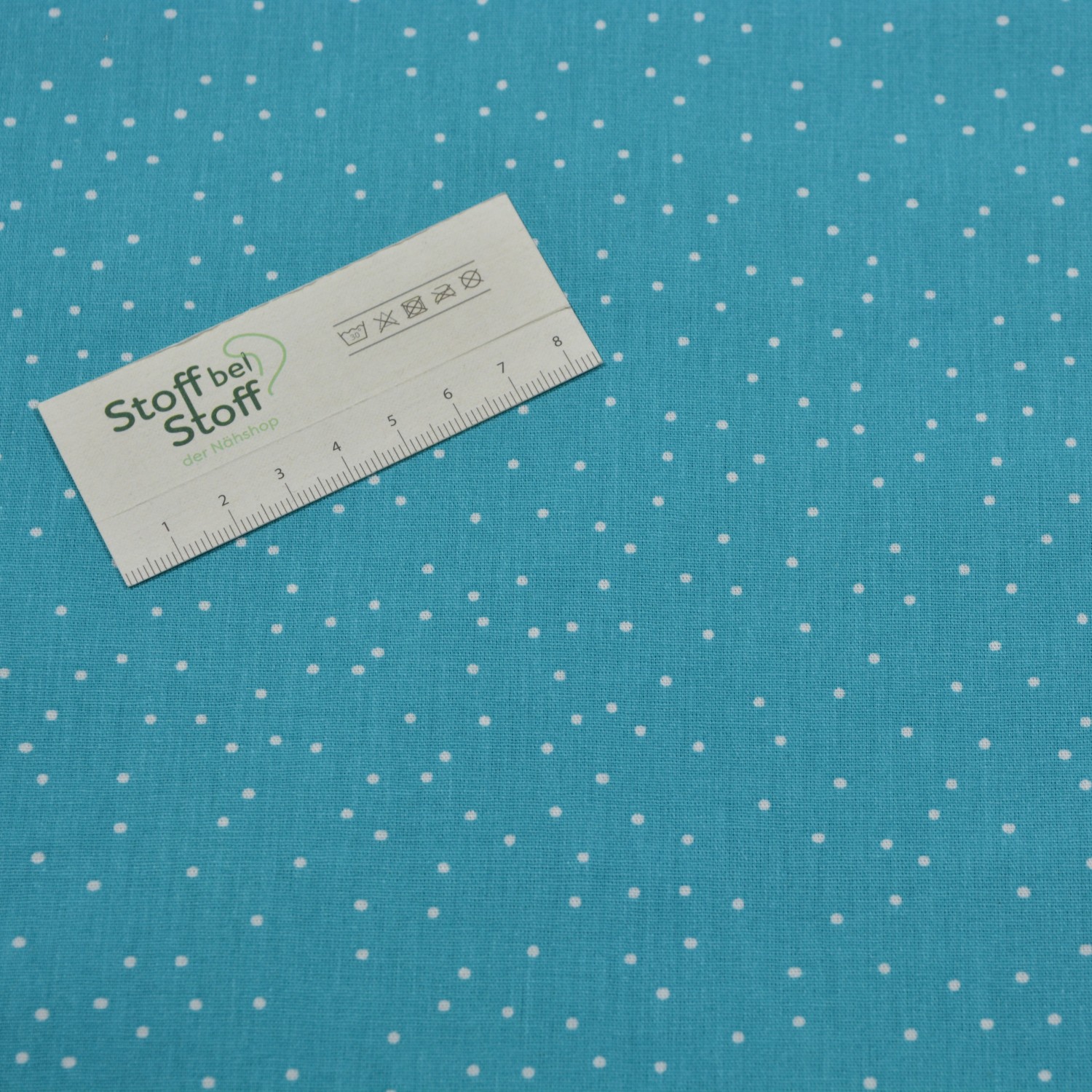 Baumwollstoff mit kleinen Punkten – Perfekt für vielseitige NähprojekteDieser feine Baumwollstoff besteht zu 100% aus Baumwolle und ist nach Oeko-Tex Standard 100, Produktklasse I, zertifiziert. Dadurch ist er besonders hautfreundlich und frei von Schadstoffen. Mit einer Breite von 145 cm und einem Gewicht von 110 g/m² eignet sich dieser leichte Stoff für zahlreiche Nähprojekte, von Bekleidung über Dekoration bis hin zu Accessoires.Das Design, wie auf dem Bild zu sehen, besteht aus kleinen weißen Punkten auf einem frischen türkisfarbenen Hintergrund. Dieses dezente und zugleich elegante Muster verleiht jedem Nähprojekt eine moderne und frische Optik. Der leichte und weiche Stoff ist ideal für sommerliche Kleidungsstücke, Kinderbekleidung, Heimtextilien und andere kreative Ideen.Dank der hohen Qualität der Baumwolle und der unkomplizierten Pflegeeigenschaften ist dieser Stoff eine hervorragende Wahl für den täglichen Gebrauch.