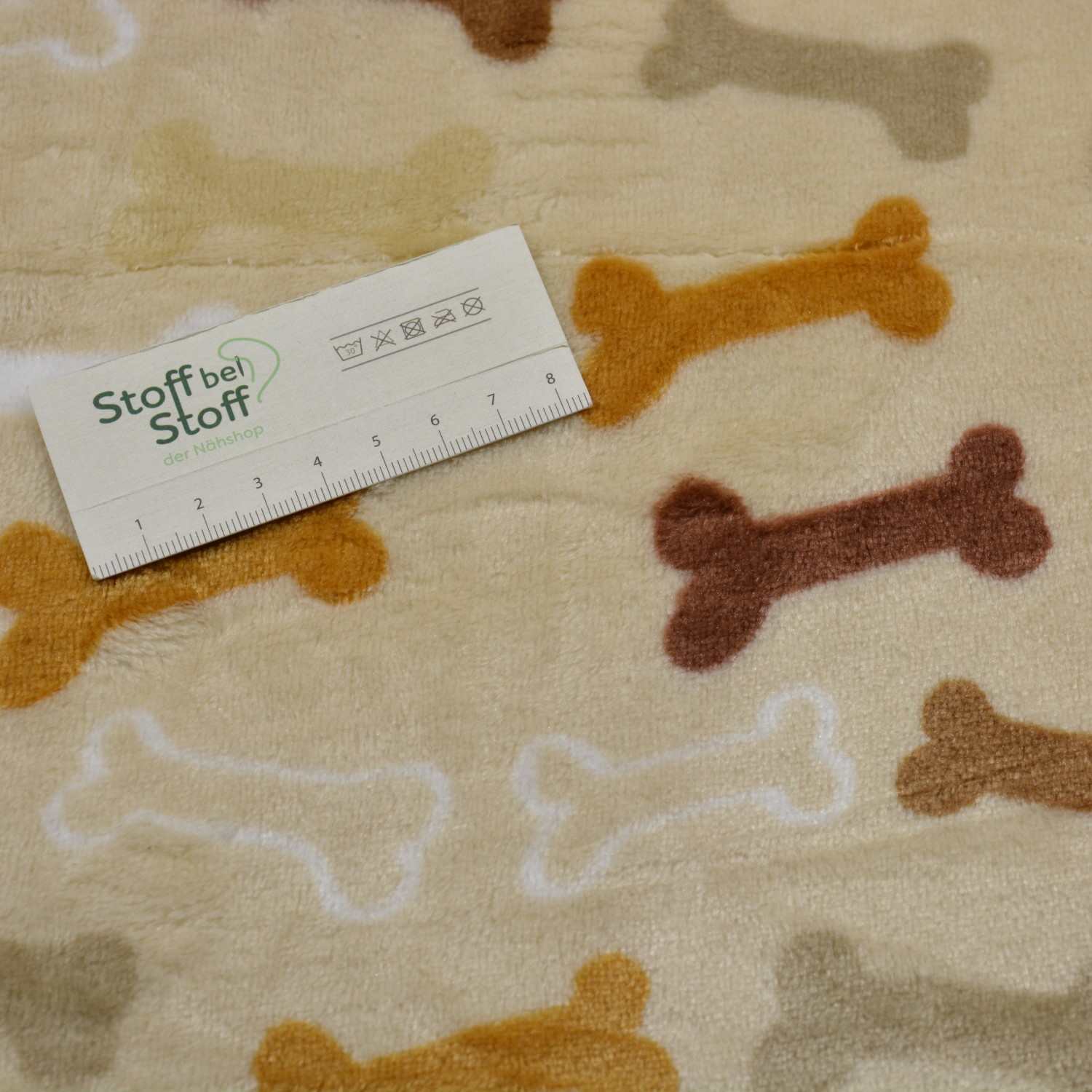 Wellnessfleece Stoff – Verspieltes Knochenmuster für TierfreundeDieser Wellnessfleece Stoff überzeugt mit seinem charmanten Knochenmuster in verschiedenen Brauntönen auf einem sanften beigen Hintergrund. Perfekt für kreative Projekte wie Hundedecken, Kuschelkissen oder Accessoires für Tierliebhaber. Hergestellt aus 100% Polyester, ist der Stoff besonders weich, flauschig und wärmend – ideal für kalte Tage und gemütliche Stunden. Mit einer Breite von 145 cm und einem Gewicht von 240 g/m² lässt sich dieser Stoff leicht verarbeiten und bietet unzählige Möglichkeiten für personalisierte Projekte.