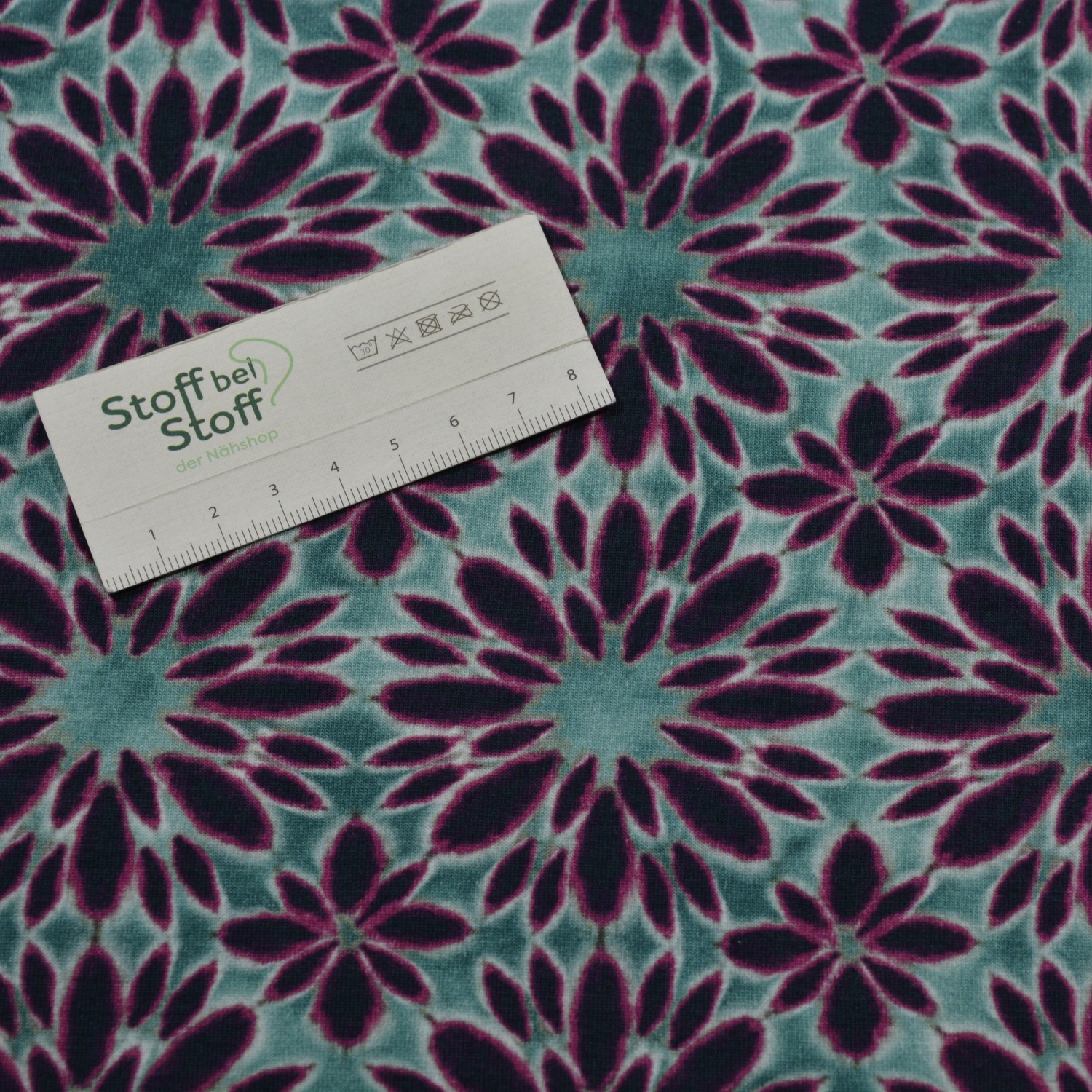 Baumwoll-Jersey Stoff – Florales Design in harmonischen FarbenDieser Baumwoll-Jersey Stoff verzaubert mit seinem floralen Muster in harmonischen Farben. Die Kombination aus 95% Baumwolle und 5% Elasthan sorgt für ein angenehmes Tragegefühl und hervorragende Elastizität. Mit einer Breite von 160 cm und einem Gewicht von 210 g/m² eignet sich dieser Stoff perfekt für stilvolle Kleidungsstücke wie Shirts, Kleider oder Röcke sowie für kreative Nähprojekte. Lassen Sie Ihrer Fantasie freien Lauf und setzen Sie Akzente mit diesem hochwertigen Stoff.