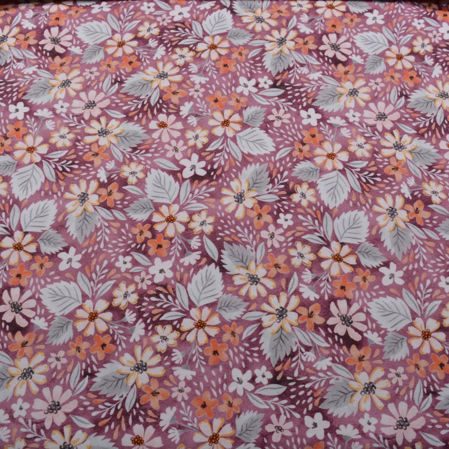 Dieser wunderschöne Sweatstoff begeistert mit einem romantischen Blumenmuster auf altrosa Hintergrund. Die Kombination aus 90% Baumwolle und 10% Polyester sorgt für ein angenehmes Tragegefühl und macht den Stoff gleichzeitig strapazierfähig und pflegeleicht. Mit einer Breite von 155 cm und einem Gewicht von 285 g/m² ist dieser Sweat ideal für gemütliche Hoodies, Sweatshirts, Kleider oder Jogginghosen. Perfekt für stilvolle Nähprojekte mit floralem Charme!