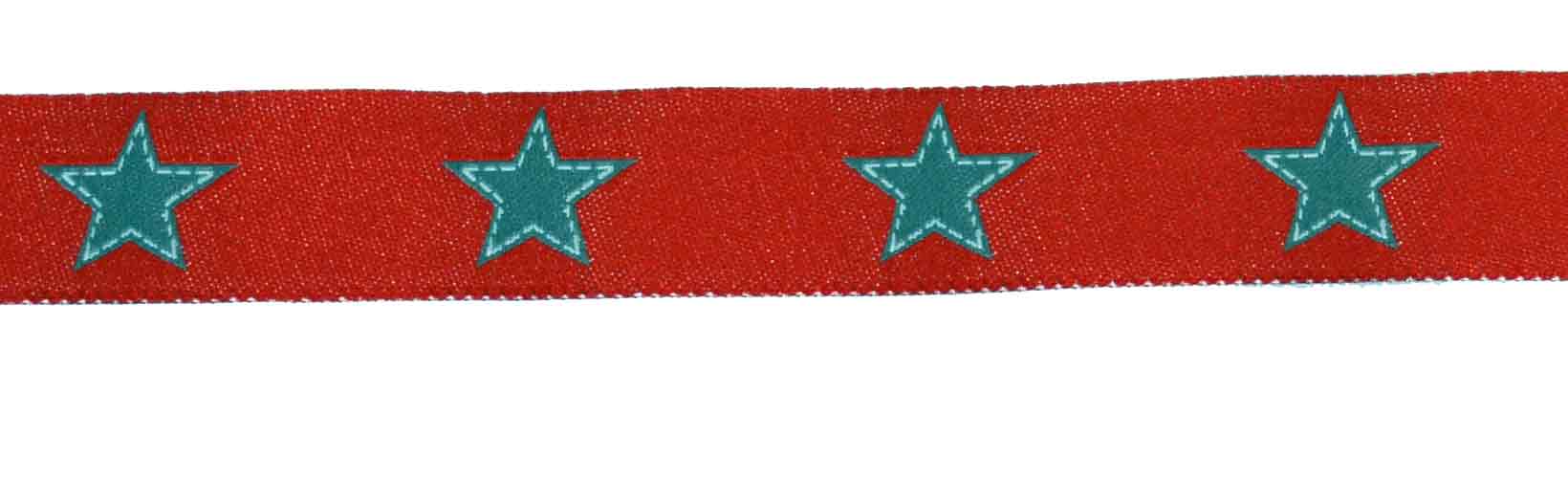 Sternchen-Webband in rot mit drei Reihen winziger, eingewebter Sternchen in cremeweiß. Das Webband hat eine leicht rockige Oberfläche, als hätte sie Kratzer und Macken, aber diese sind alle eingewebt. Es hat also keinen cleanen sternchen-Look sondern eine etwas rustikalere Variante.Bestens geeignet, um Taschen, Kleidung und Accessoires zu verschönern.